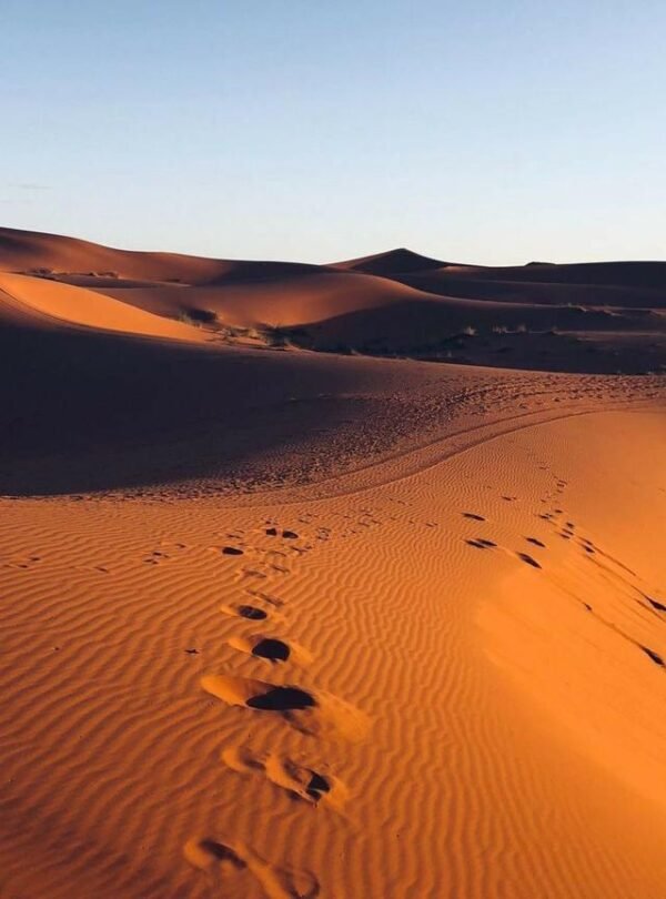 We travel through Berber villages to the dramatic Todra Gorges, where you’ll have time to explore and relax. In the afternoon, we arrive in Merzouga, gateway to the Sahara. Enjoy a camel trek across the golden dunes at sunset, followed by a traditional dinner, Berber music, and a magical night under the stars in a desert camp.